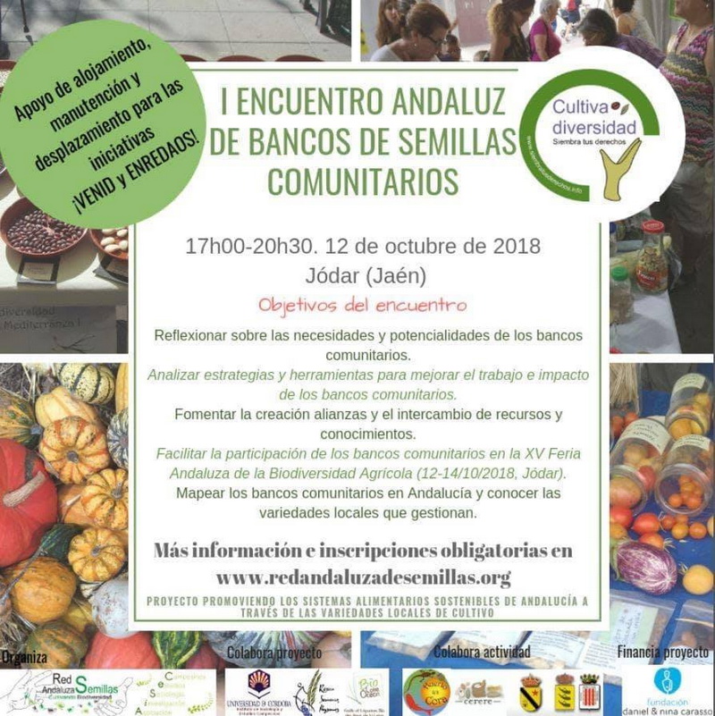 El viernes 12 de octubre, a las 17:00, se celebró el Primer Encuentro Andaluz de Bancos de Semillas Comunitarios en el IES "Juan López Morillas", con motivo de la XV Feria Andaluza de la Biodiversidad Agrícola que este año tiene como sede a la localidad de Jódar entre el 12 y el 14 de octubre.