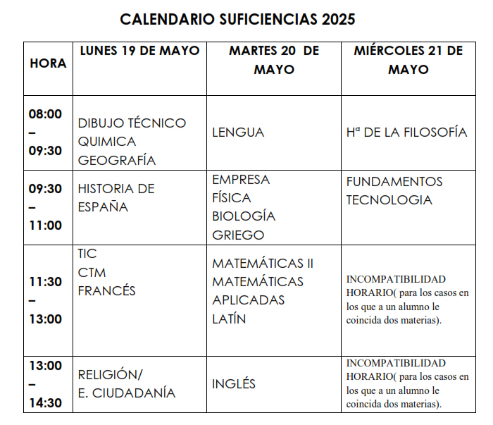 Pruebas finales 2º Bachillerato
