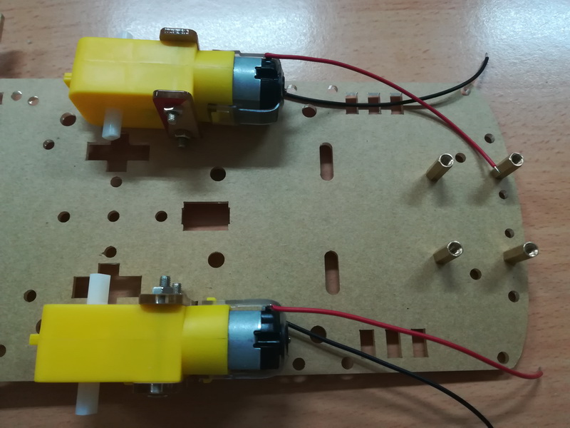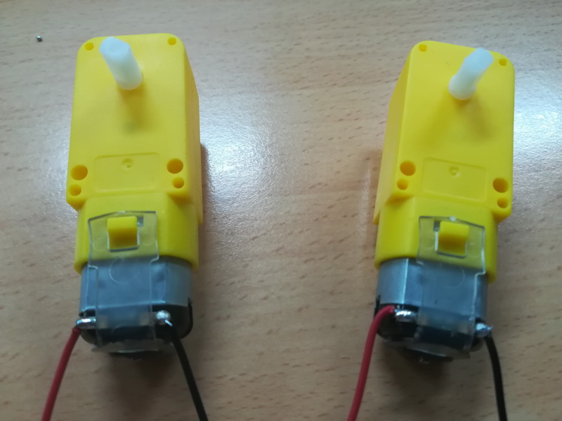 Aunque la tendencia sería instalarlos de forma simétrica (lo siento por aquellos que tenéis un trastorno obsesivo compulsivo), es conveniente hacerlo de forma que los cables queden en la misma posición en los dos motores. La razón es porque los motores no giran igual en ambos sentidos y esta instalación posibilita que el coche se desplace lo más cerca posible de la línea recta al girar ambos a la misma velocidad aproximadamente.