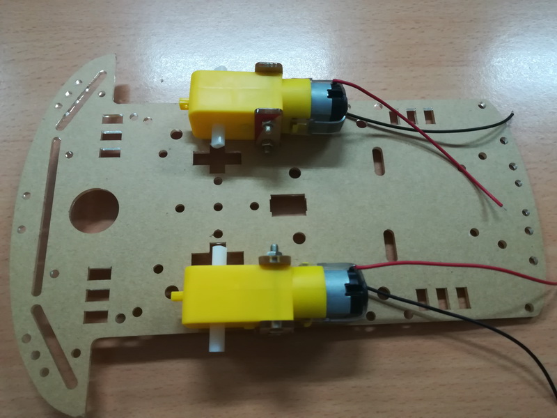 Comenzaremos el montaje conectándole los cables a los motores. Lo haremos con una pequeña soldadura. No es importante como conectemos los cables ya que luego podremos intercambiar las conexiones que realicemos con ellos o cambiarlo en la programación.