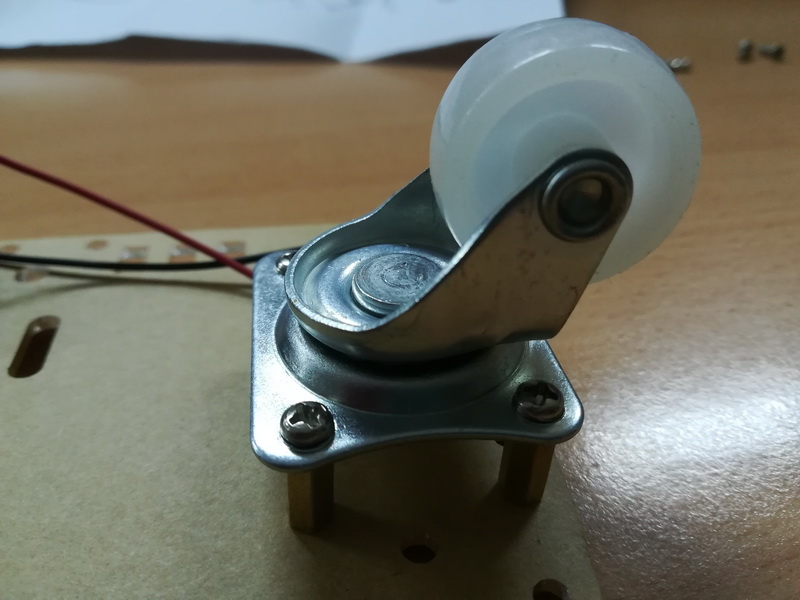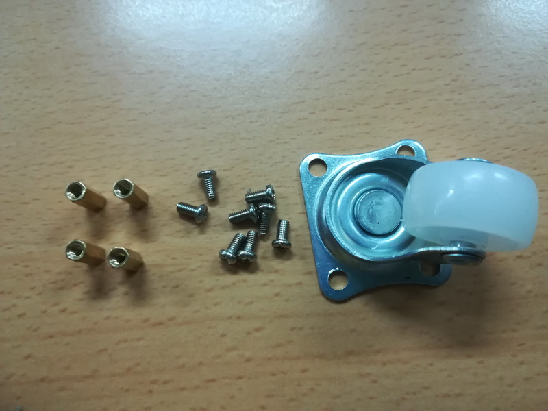 Vamos ahora a realizar la instalación de la rueda loca que permitirá el giro de nuestro coche utilizando los separadores y los tornillos incluidos en el kit.