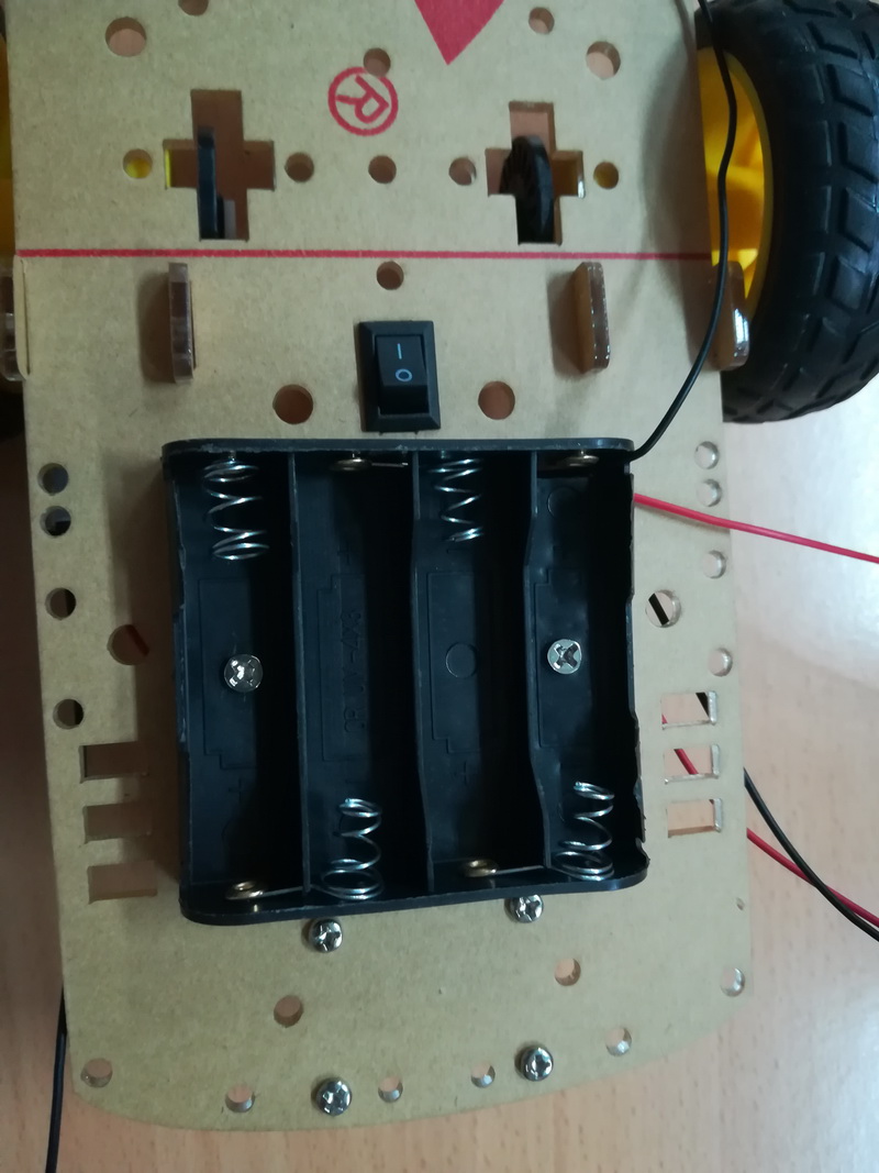 Concluimos el montaje del chasis con la instalación del portapilas que nos proporcionará la energía necesaria para mover nuestro sencillo coche robot 2WD.