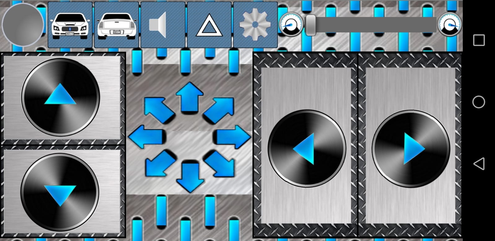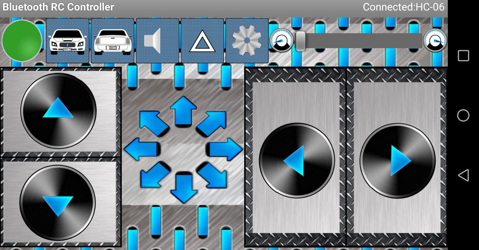 Para poder manejar ahora el coche deberemos instalar en nuestro dispositivo móvil una aplicación que envíe los datos correspondientes a través de Bluetooth a nuestro coche y realice la acción asociada al dato recibido. En la Google Play Store podemos encontrar alguna aplicación que nos permite controlar nuestro coche. Hay quien ha realizado el trabajo por nosotros y ha diseñado una muy completa aplicación llamada Arduino Bluetooth RC Car y que puede verse en el siguiente enlace