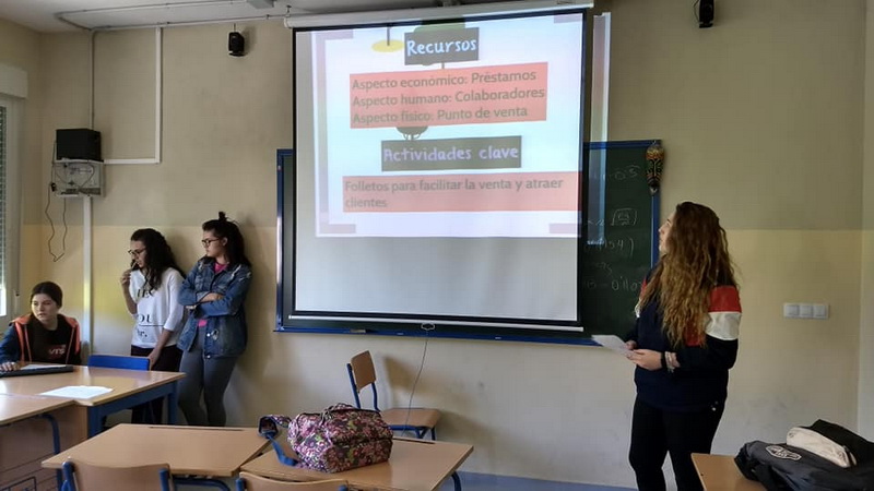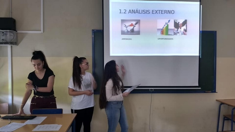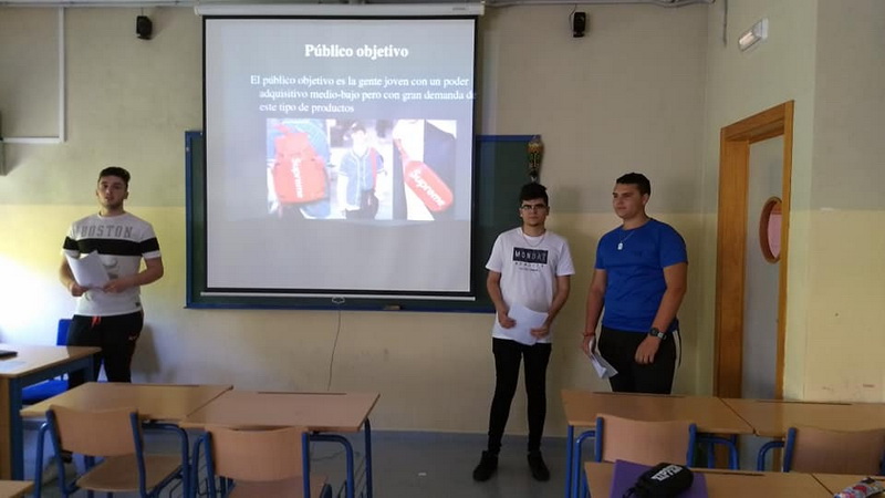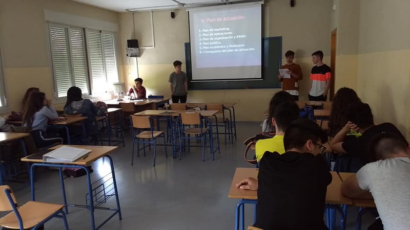 Los alumnos y alumnas de 2º de Bachillerato C han dedicado la mayor parte de la tercera evaluación a la elaboración por grupos de proyectos de empresa. Mediante dichos proyectos se buscaba plasmar en la práctica todos los contenidos que se habían visto a lo largo del curso. Tenían libertad para elegir el objeto de la empresa, lo que favoreció la creatividad en los proyectos: juegos al aire libre, maletas con sistemas de seguridad, venta online de ropa diseñada a medida y de ropa de moda fueron algunos de los proyectos presentados.