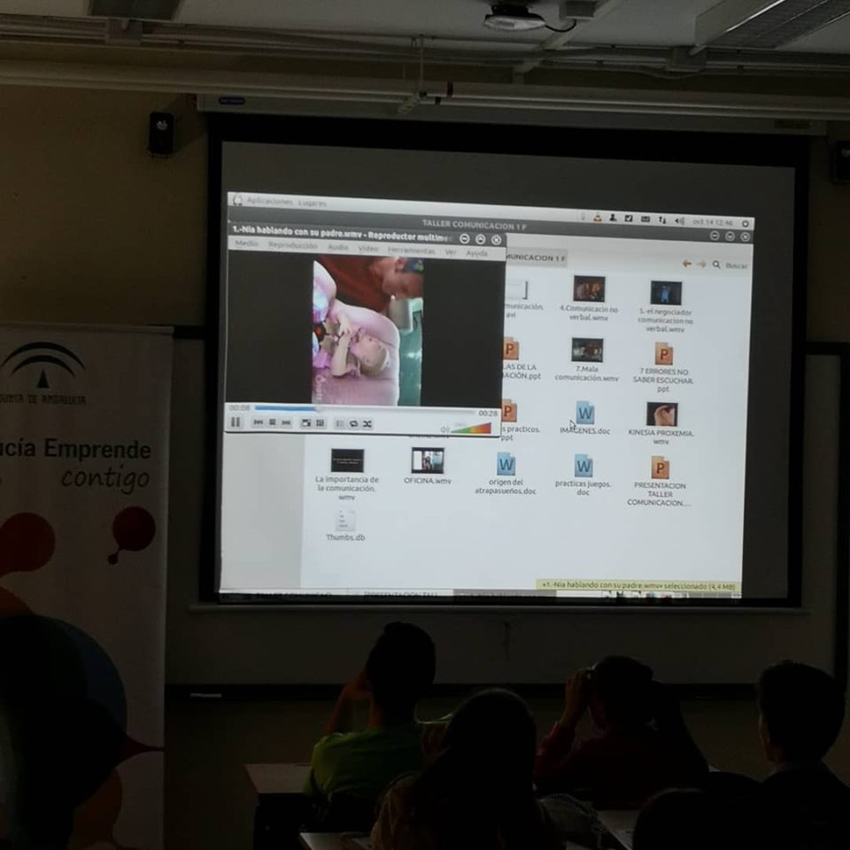 En el taller se están impartiendo pautas sobre el significado de la comunicación no verbal. Es importante entender este lenguaje gestual con el objetivo de dar a entender la importancia de escuchar y atender a las personas que intentan ponerse en contacto con nosotros (kinesia).