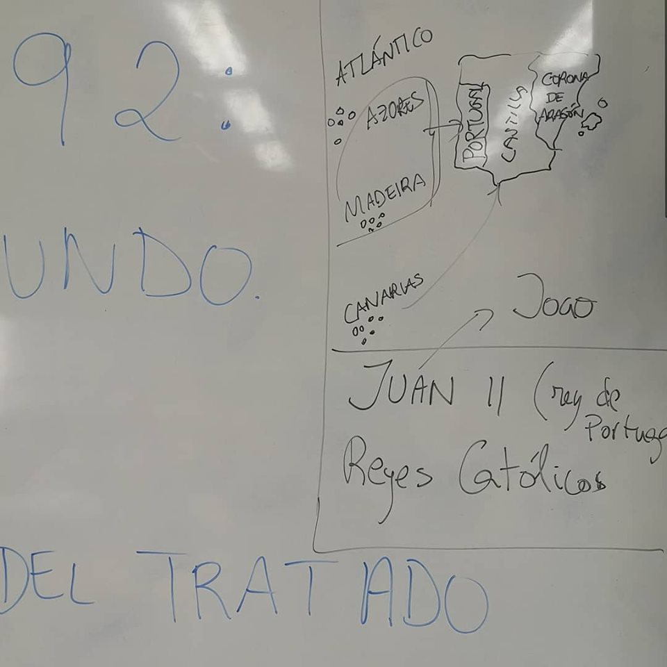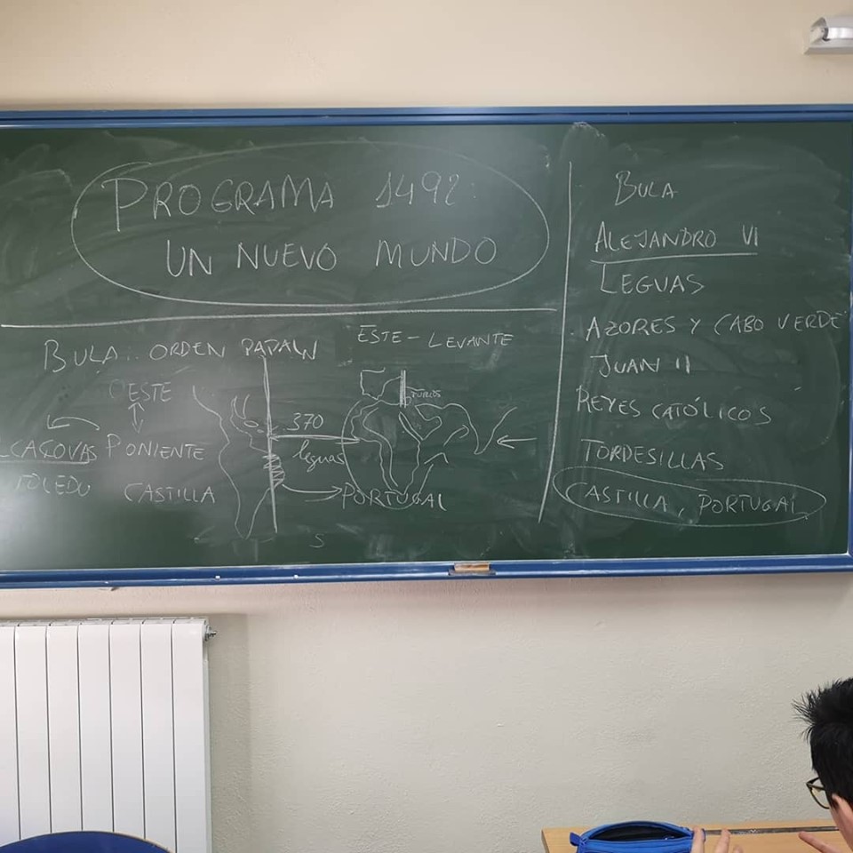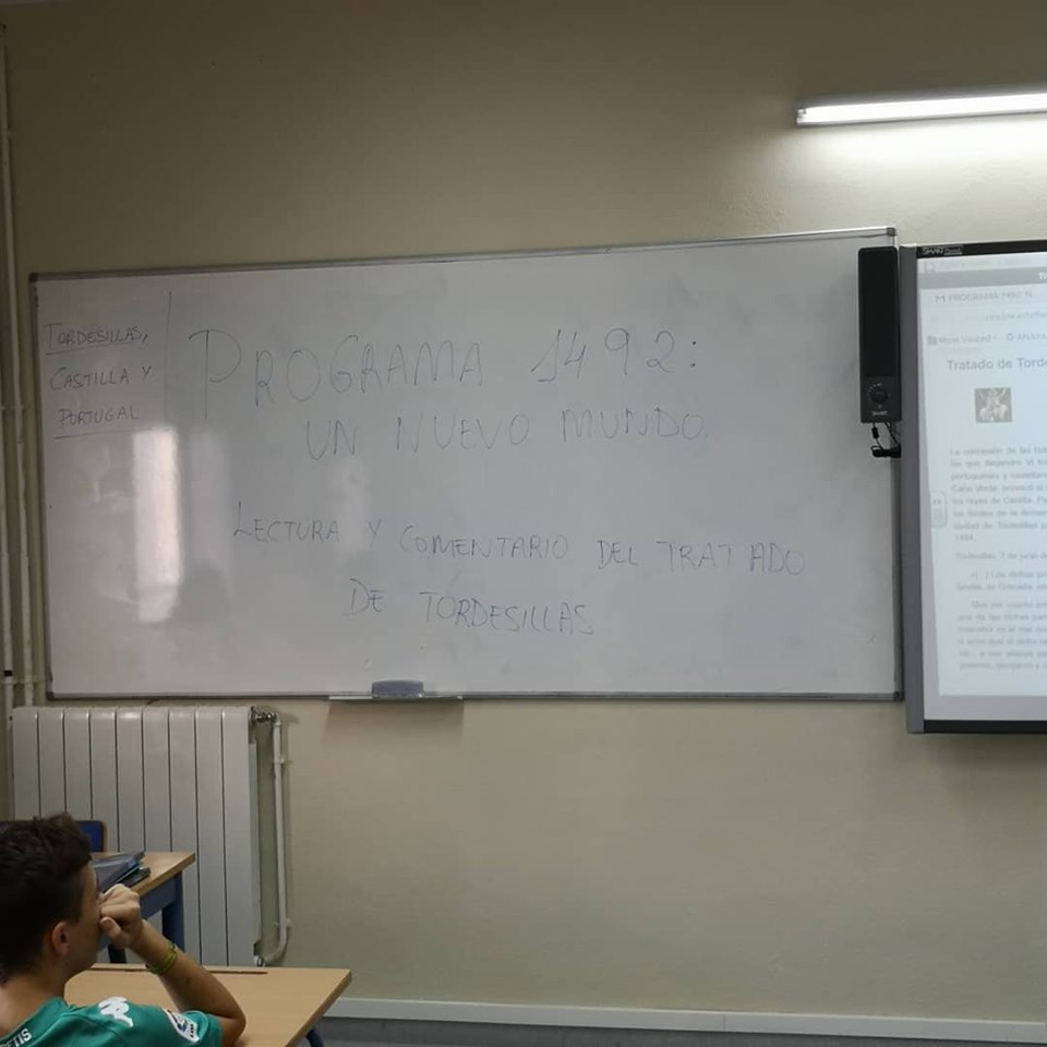 Esta semana se está llevando a cabo en el IES Juan López Morillas el Programa 1492: Un Nuevo Mundo, de la Junta de Andalucía, según las Instrucciones del 24/9/2019. Las actividades pluridisciplinares programadas se están centrando en la lectura de textos literarios, científicos, históricos, etc. sobre aquella época, adaptados a los distintos niveles educativos y relacionando la historia, la geografía, el arte y la literatura. Un ejemplo de ello, es la lectura y comentario de las Cartas de Colón por parte del alumnado de 2º de ESO, o de la lectura y comentario del Tratado de Tordesillas por el alumnado de 3º de ESO como se aprecia en las imágenes.