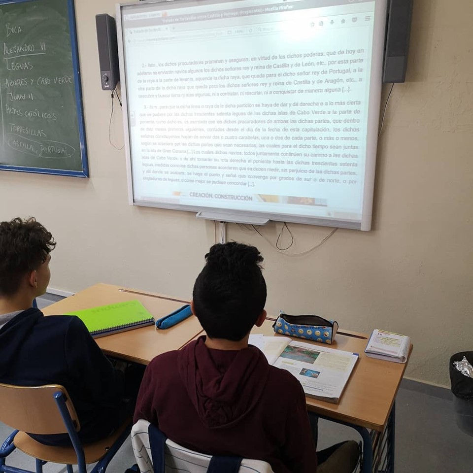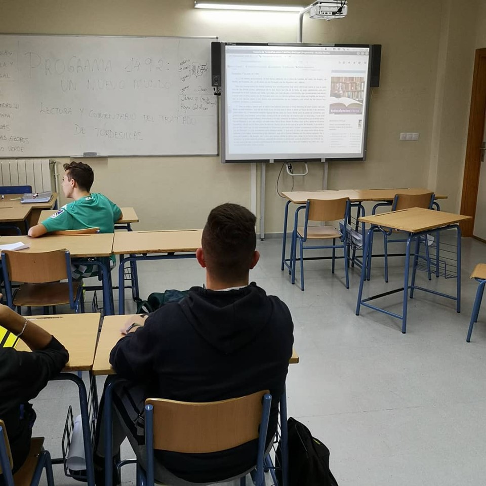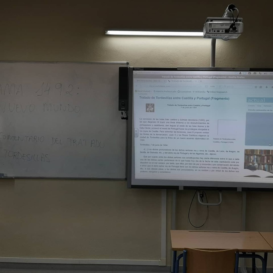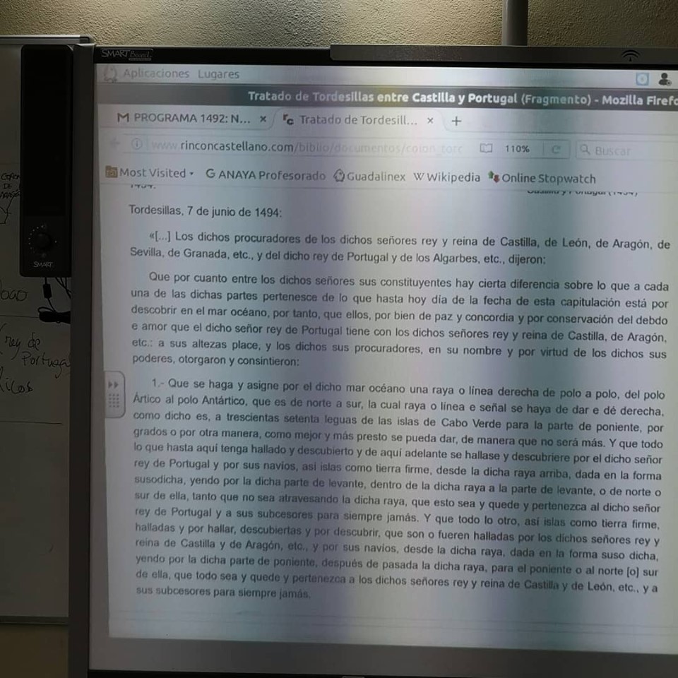Esta semana se está llevando a cabo en el IES Juan López Morillas el Programa 1492: Un Nuevo Mundo, de la Junta de Andalucía, según las Instrucciones del 24/9/2019. Las actividades pluridisciplinares programadas se están centrando en la lectura de textos literarios, científicos, históricos, etc. sobre aquella época, adaptados a los distintos niveles educativos y relacionando la historia, la geografía, el arte y la literatura. Un ejemplo de ello, es la lectura y comentario de las Cartas de Colón por parte del alumnado de 2º de ESO, o de la lectura y comentario del Tratado de Tordesillas por el alumnado de 3º de ESO como se aprecia en las imágenes.