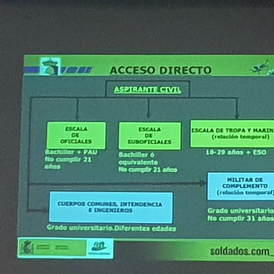 - Escala de suboficiales cuyas condiciones para el acceso son tener 18 años y no más de 20. Superación de unas pruebas físicas, psicotécnicas, prueba de inglés y reconocimiento médico. El requisito académico es el título de bachillerato.