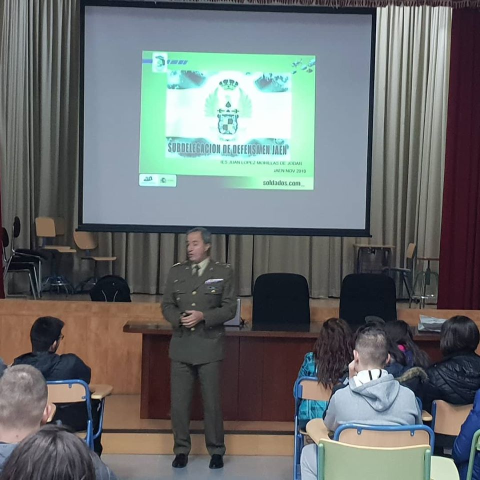 Hoy nuestro alumnado de 4º de la ESO y de 2º de bachillerato, junto con el alumnado de 2º Formación Profesional Básica de Jardinería han recibido una charla informativa a cargo del Capitán D. Salvador Moya Ladrón de Guevara. En dicha charla se ha informado a nuestros alumnos de la composición de las Fuerzas Armadas así como los valores y el compromiso y vocación necesarios para el acceso.