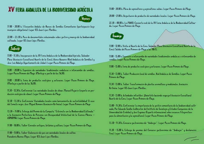 El viernes 12 de octubre, a las 17:00, se celebró el Primer Encuentro Andaluz de Bancos de Semillas Comunitarios en el IES "Juan López Morillas", con motivo de la XV Feria Andaluza de la Biodiversidad Agrícola que este año tiene como sede a la localidad de Jódar entre el 12 y el 14 de octubre.