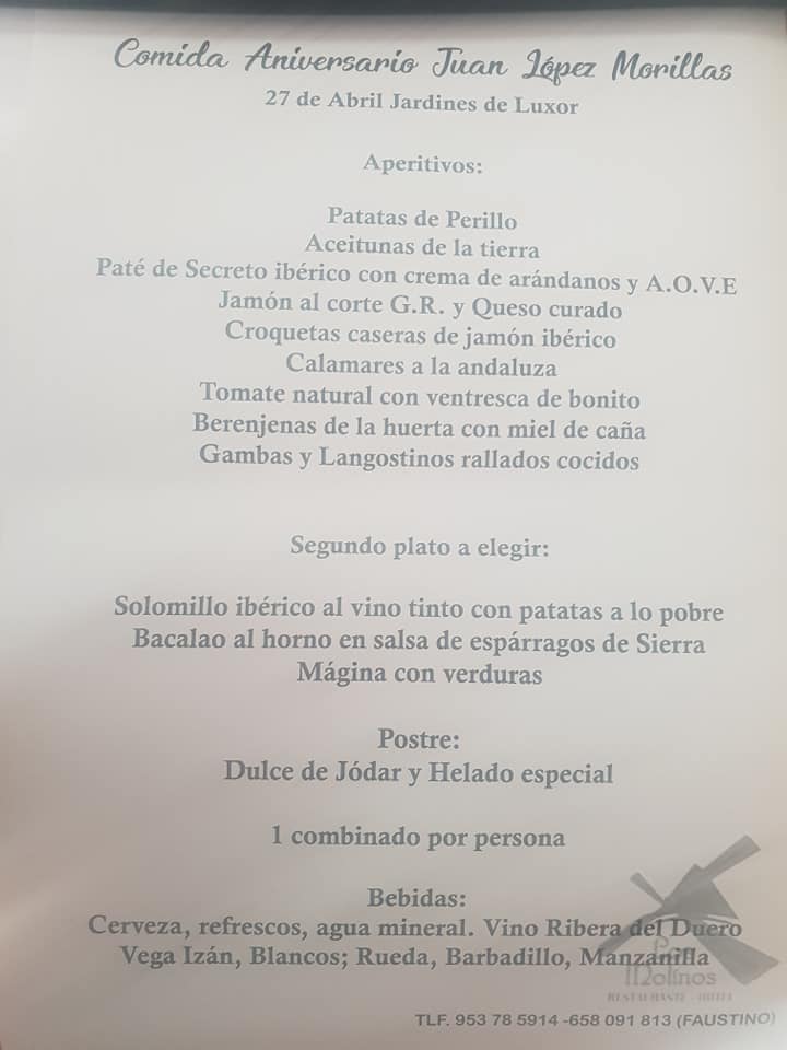 Las invitaciones, con un coste de 30 euros, están ya disponibles en el IES Juan López Morillas, donde podrán ser recogidas lunes de 12 a 14 horas y viernes de 9 a 11 horas. También pueden conseguirse en el Restaurante Los Molinos de Jódar.