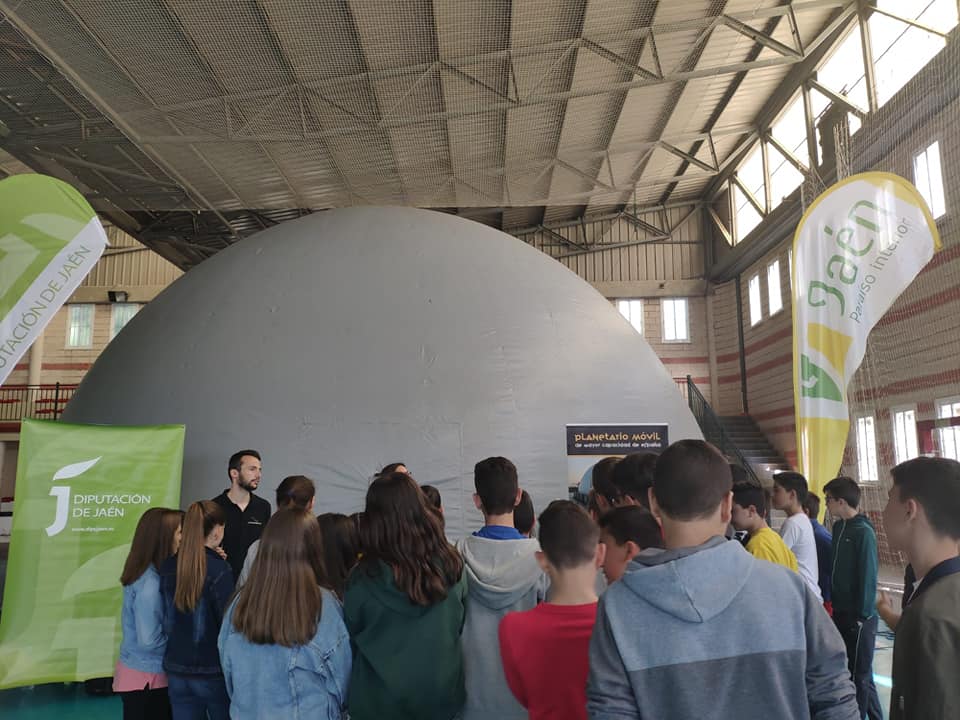 El Planetario surge de la iniciativa “Recrea en verde” de las actividades y talleres de Educación Ambiental que organiza la Diputación de Jaén. El alumnado y el profesorado de nuestro centro ha podido disfrutar de la visión del cielo nocturno y de los conocimientos sobre el mismo ofrecidos por la Astronomía. Además, durante la visita al Planetario se ha transmitido al alumnado la importancia de la conservación de los cielos nocturnos de la provincia de Jaén, haciéndolos conscientes del problema de la contaminación lumínica nocturna.